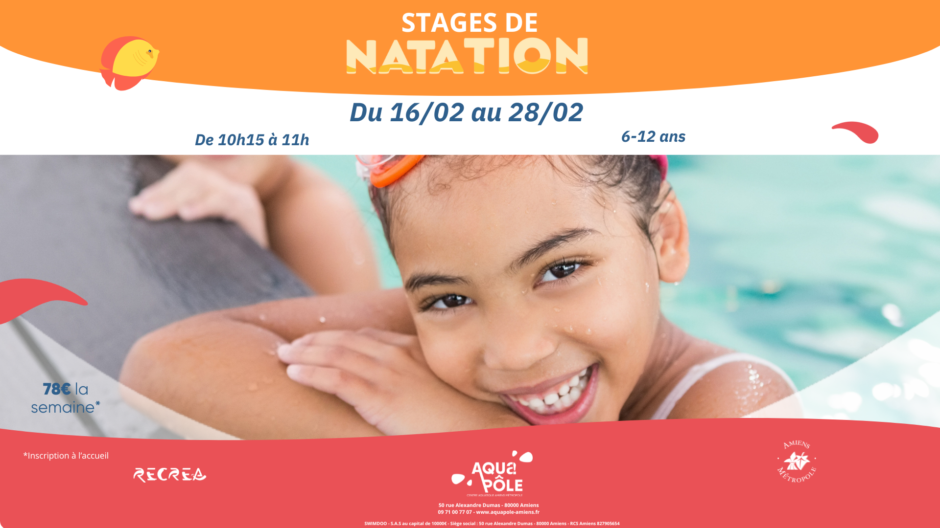 Bassin 50m : 07:00 - 19:45
